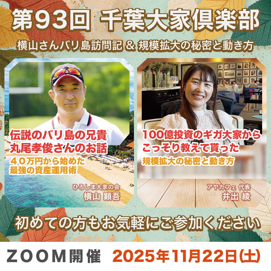 第93回千葉大家俱楽部を11月22日(土)に開催します。